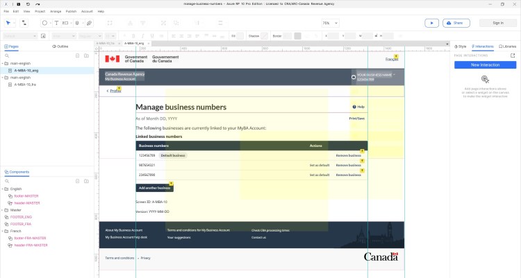 From 2021 to 2025, I worked at the Canada Revenue Agency as a Programs Officer, specializing in UX prototyping with Axure RP. My focus was on designing and maintaining interactive prototypes for key CRA portals, including My Account, My Business Account, and Represent a Client. These prototypes supported call centre agents by simulating the taxpayer experience and were also used for onboarding, service demonstrations, and stakeholder presentations. In addition, I designed wireframes based on detailed business requirements, helping translate complex service needs into clear, user-friendly interfaces.